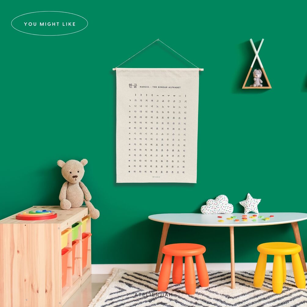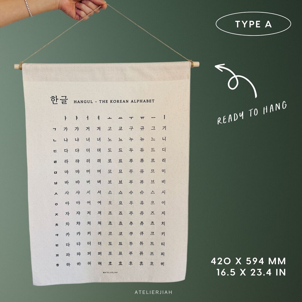 Looking for a minimalist high quality gift for Hangul Korean learning friend and family or an educational wall hanging art for your kids room decor? This sustainable cotton Hangul Alphabet Chart will not only help you learn Hangul, but also make your space look modern and chic with Korean vibe. Plus, USPS first class mail shipping in the US with the earth friendly packaging!